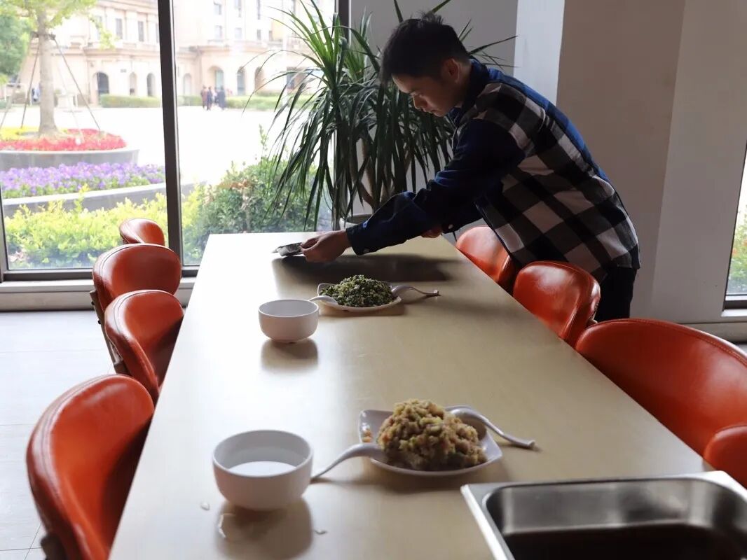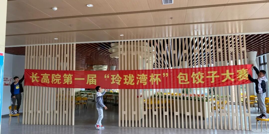 下午两点时,各部门先行到达玲珑湾餐厅进行了场地布置,挂横幅、摆比赛用的馅料与饺子皮、打扫场地卫生等一系列前期准备工作。