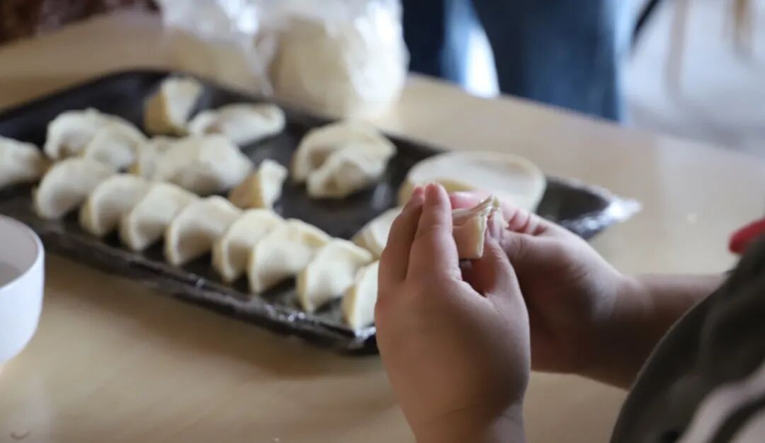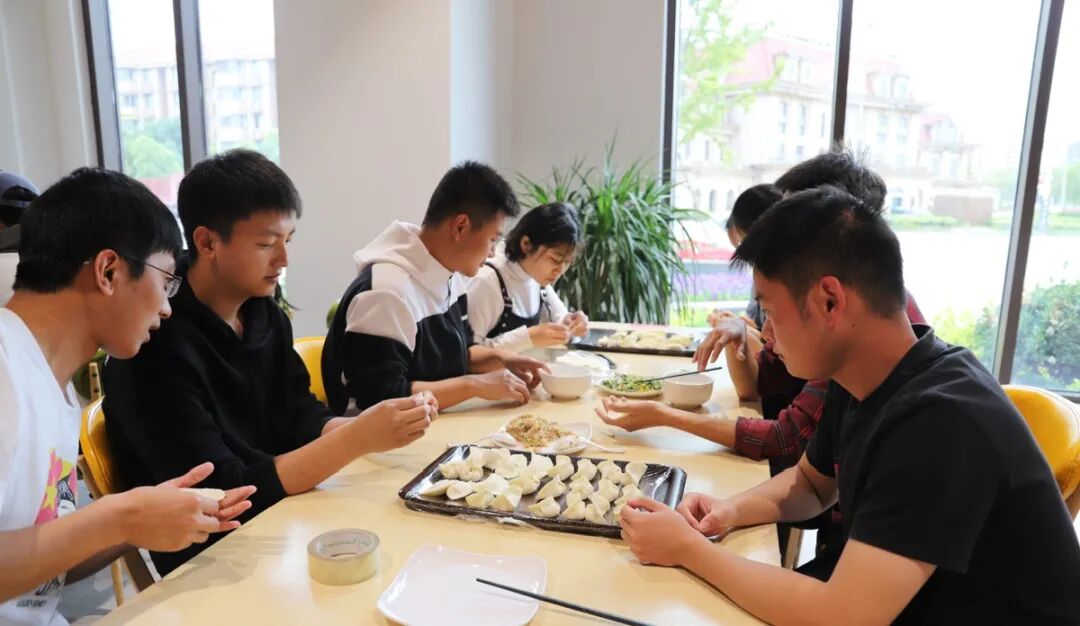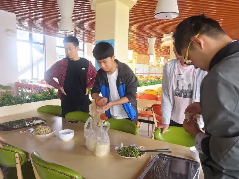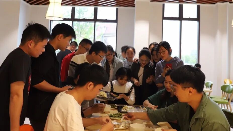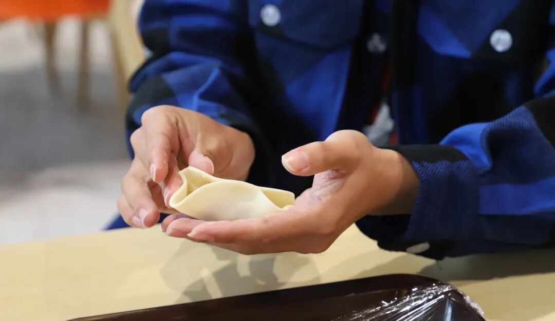 之后就是自由包饺子时间了,大家围在一起学习如何正确的包饺子,也有一些其他创意十足的包法争得大家相互学习。同学们都乐在其中,很快将饺子都包完了。