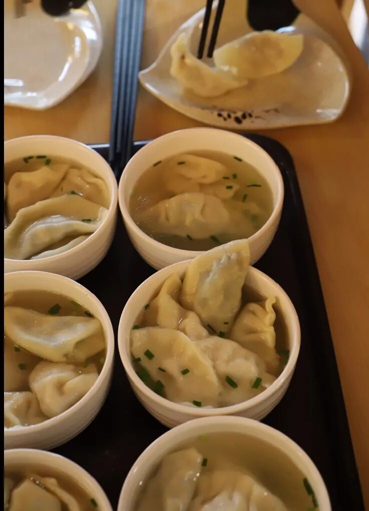 四点后,饺子陆续出锅,同学们坐在一起开始享受劳动成果。